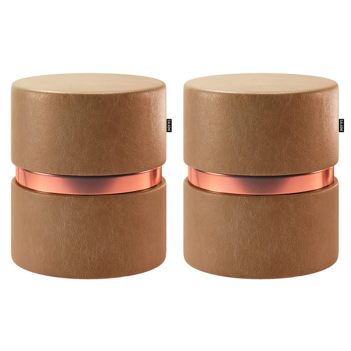 Kit 02 Puffs Bancos Decorativos Redondo Porto 49x43cm Corano Amarula - Desk Design