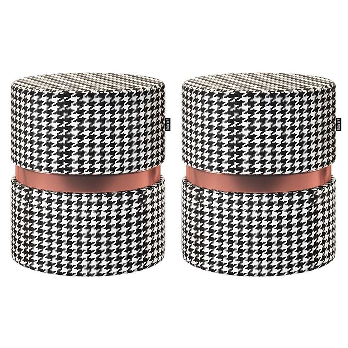 Kit 02 Puffs Bancos Decorativos Redondo Porto 49x43cm Suede Cardan - Abmaza