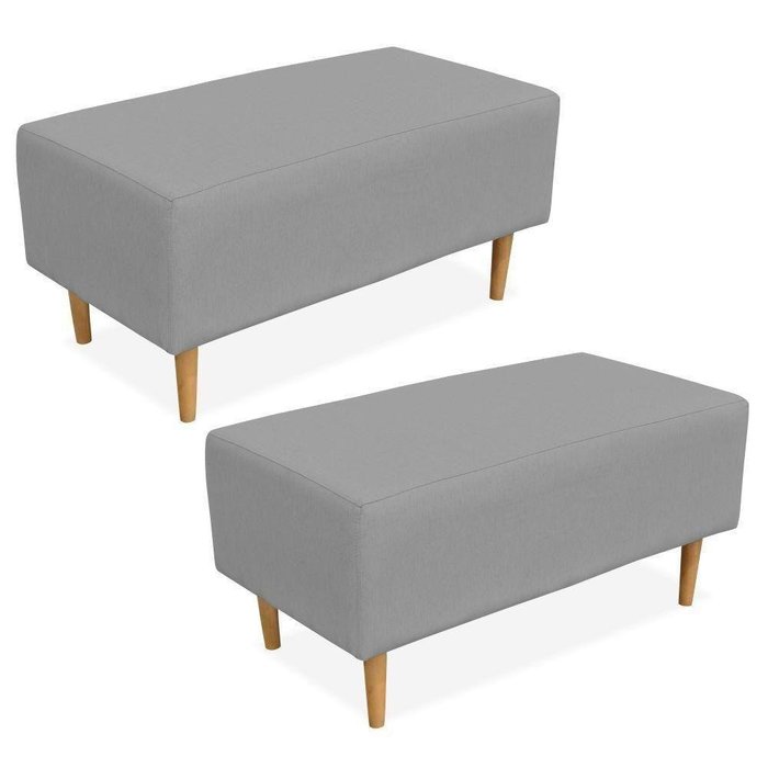 Kit 02 Puffs Decorativo Sala De Estar Cléo W01 Pés Palito 90 Cm Linho Cinza - Lyam Decor