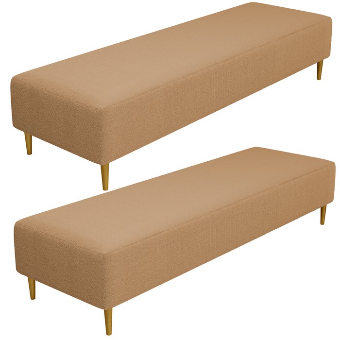 Kit 02 Puffs Decorativo Sala de Estar Bali W01 Pés Palito 210x60cm Bouclê Mostarda - Lyam Decor