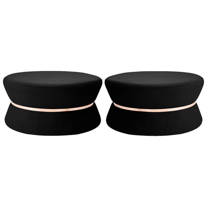 Kit 02 Puffs Sala de Estar 95cm Dhaka Veludo Preto Gran Belo