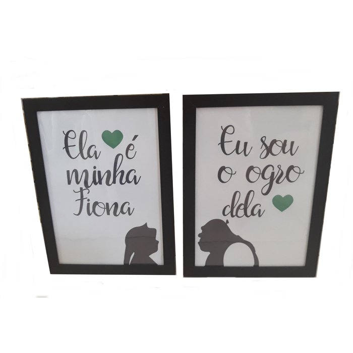 Kit 02 Quadros Decorativos: Ela é minha Fiona, Eu sou o Ogro dela.