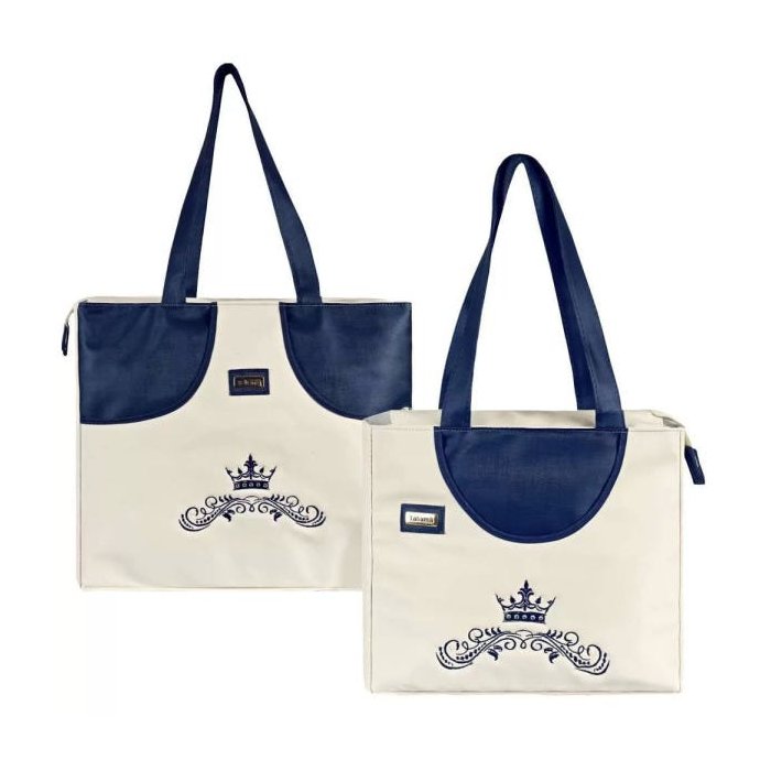 Kit 02 Sacolas Bolsa Maternidade Realeza Palha com Azul Marinho M e G - Talismã