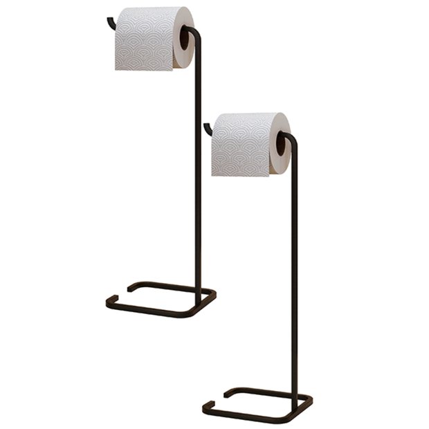 Kit 02 Suportes Papeleira De Chão Para Banheiro Lavabo Set Aço Multiuso D01 Preto Fosco - Lyam