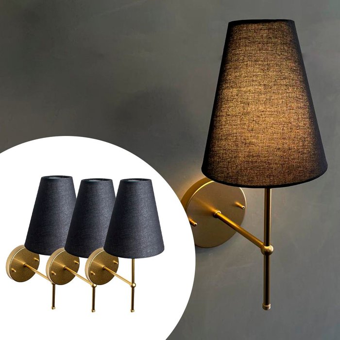 Kit 03 Arandelas de Parede Clássica Dourada com Cúpula Preto Ref 05 para Sala, Corredor, Quarto Cama