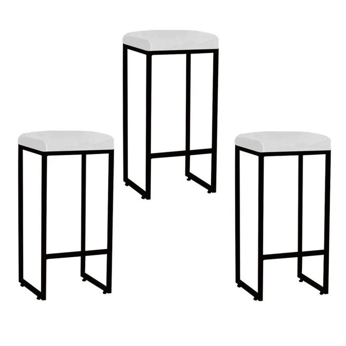 Kit 03 Banqueta Alta Lara Para Churrasqueira Ferro Bronze Branco - Amey Decor Branco