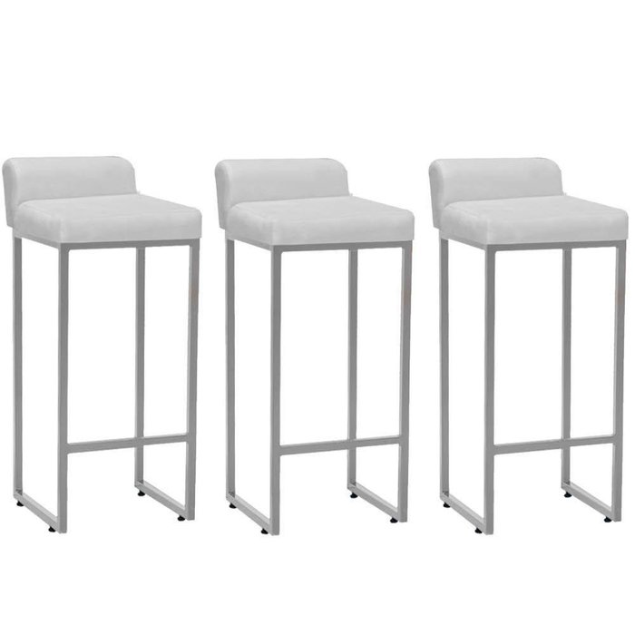 Kit 03 Banqueta Alta Mia Com Encosto Cozinha Bistrô Bar Balcão Ferro Prata Corino Branco - Amey Decor