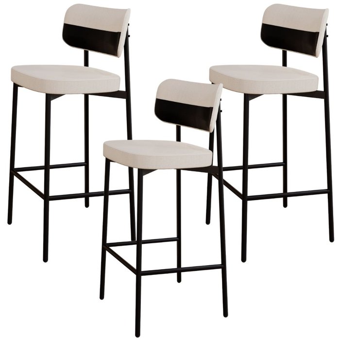 Kit 03 Banquetas Alta Bar Cozinha Sala de Jantar Aço Preto Kaira C01 Linho Palha Courino Preto - Lya