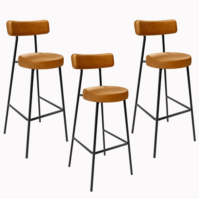 Kit 03 Banquetas Altas Bar Sala De Jantar Estrutura Em Aço Milão F01 Couríssimo Whisky - Lyam Whisky