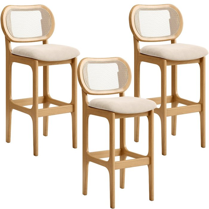 Kit 03 Banquetas Altas Para Cozinha Bancada Sala Tela Betta Fixa L02 Suede Bege - Lyam Decor