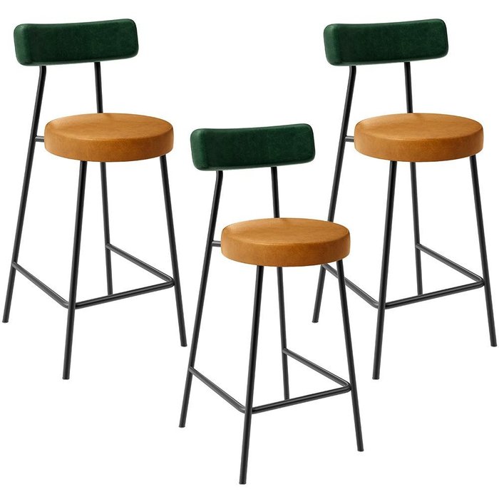 Kit 03 Banquetas Baixa Cozinha Sala Jantar Bancada Milão L02 Facto Verde Couríssimo Whisky - lyam