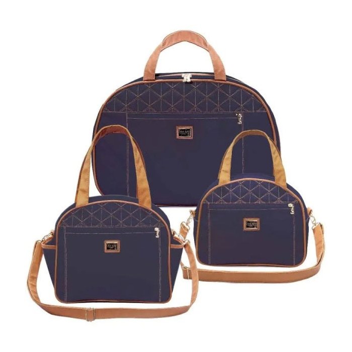 Kit 03 Bolsas Mala Maternidade Bombom Azul Marinho - Hug Baby