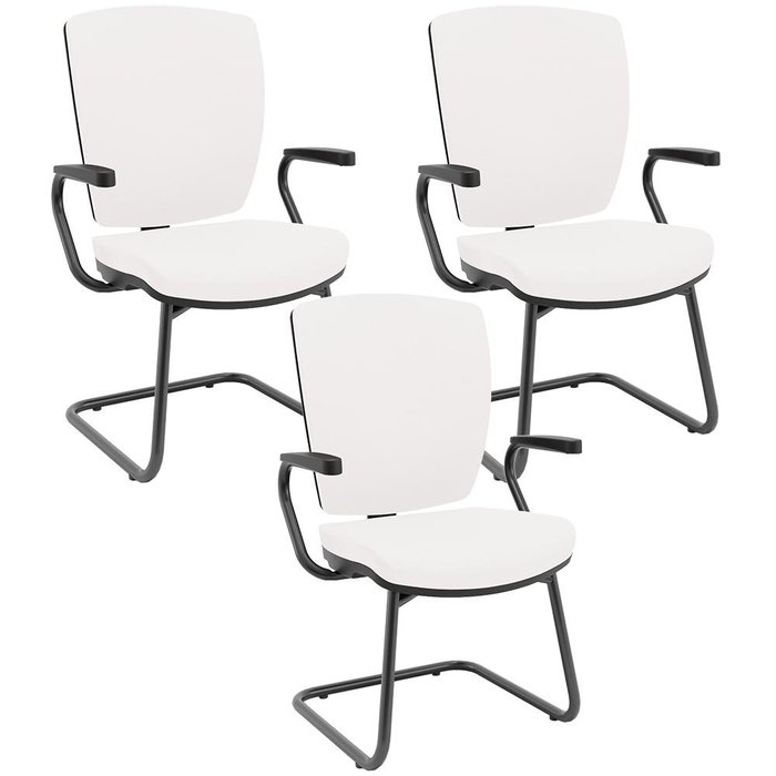 Kit 03 Cadeiras de Escritório Fixa Executiva Office Preto Slim Alta Flexi P03 Vinil Branco - Lyam