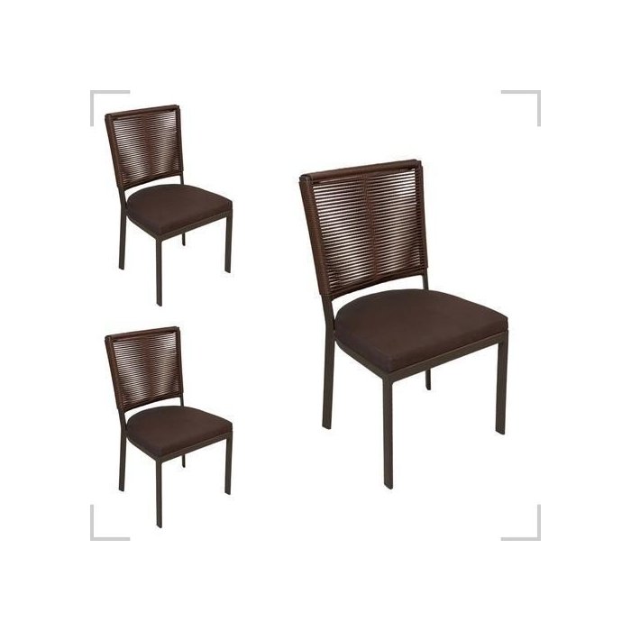 Kit 03 Cadeiras Moderna em Alumínio Área de Churrasqueira Cor:marrom marrom