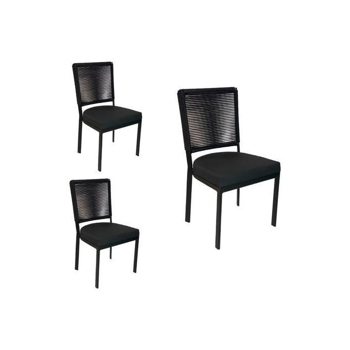 Kit 03 Cadeiras Moderna em Alumínio Área de Churrasqueira Cor:preto preto