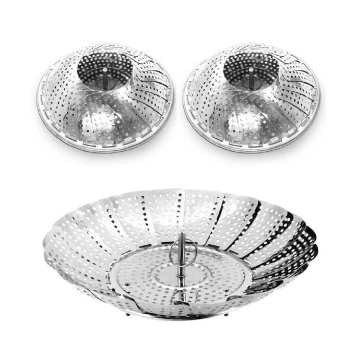 Kit 03 Cestos Cozimento A Vapor Inox Cozinha Panela 24Cm