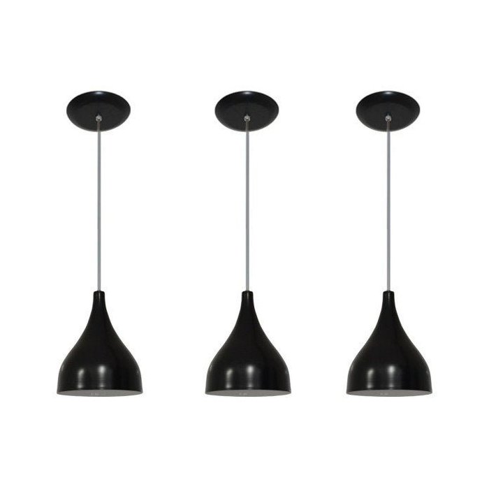 Kit 03 Lustres Pendente Colorido Balcão Cozinha Americana - Preto com Interior Branco
