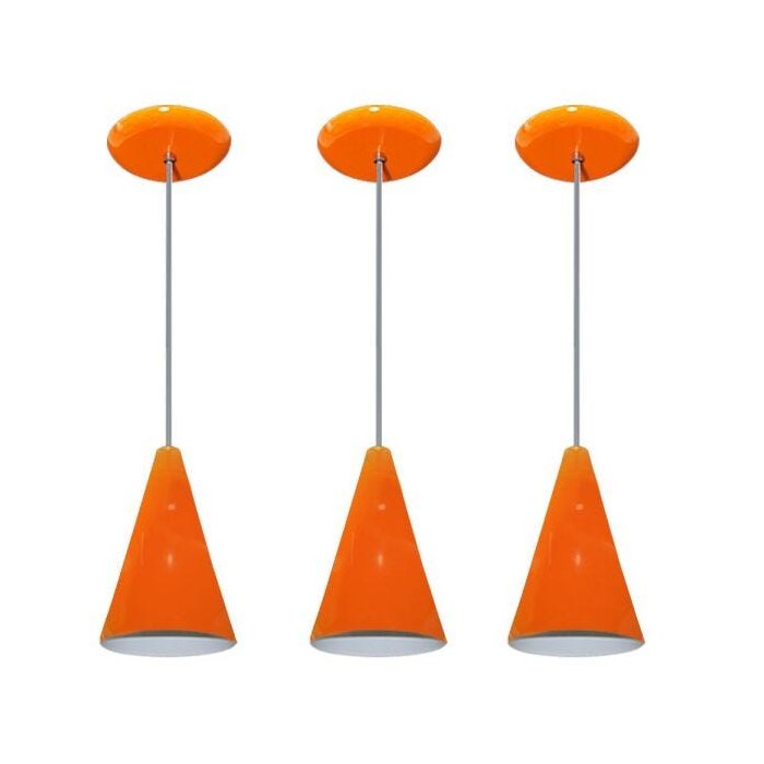 Kit 03 pendentes de alumínio modelo cone - ideal para balcão / bancada - Laranja Laranja