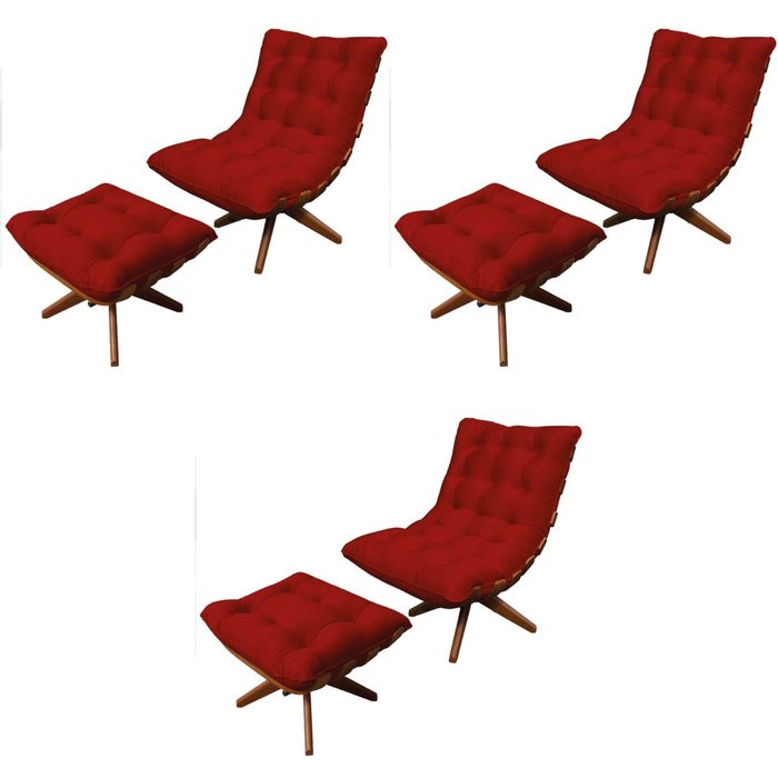 Kit 03 Poltrona Costela Giratória Com 03 Puff Base Madeira Assento Veludo Bordo Ruotolo Decor