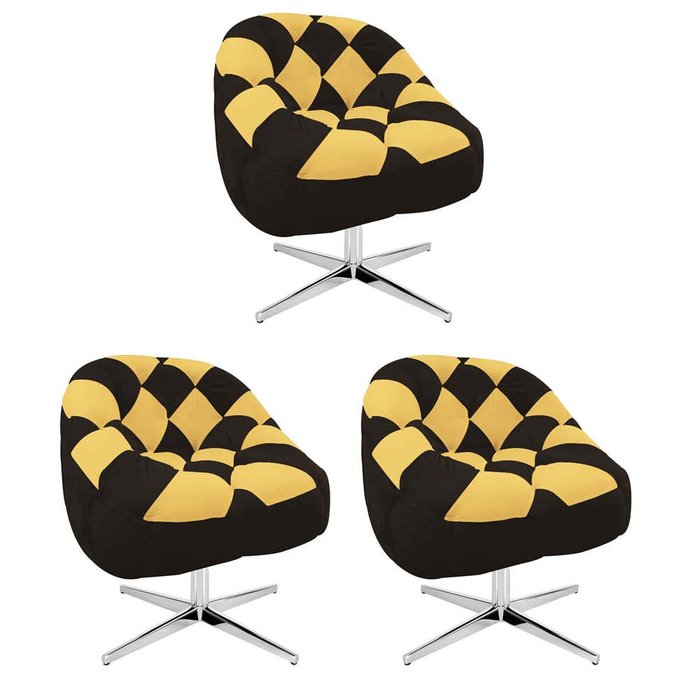 Kit 03 Poltrona Paloma Escritório Sala Giratória Metal Suede Marrom e Suede Mostarda - DOMINIC DECOR