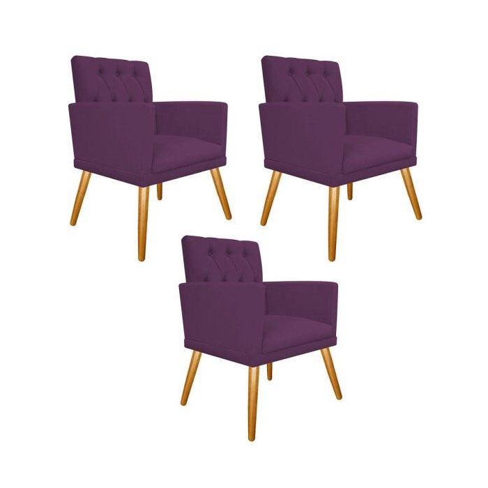 kit 03 Poltronas Fernanda Palito Mel Suede Roxo - Doce Sonho Móveis