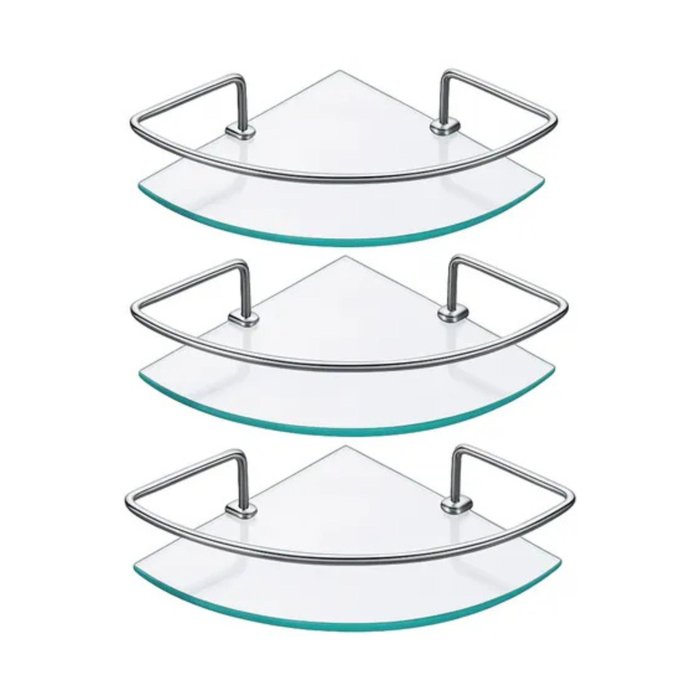 Kit 03 Porta Shampoo Canto Prateleira Vidro Temp. 6mm incolor