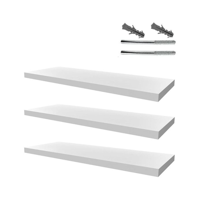 Kit 03 Prateleiras em Mdf 15mm Branco 10x30cm com Suporte Fixação