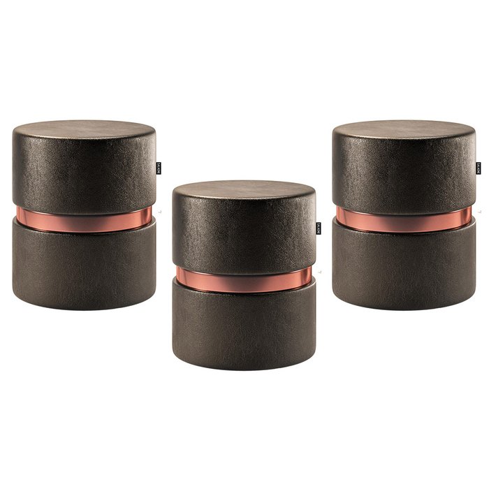 Kit 03 Puffs Bancos Decorativos Redondo Porto 49x43cm Corano Preto - Abmaza