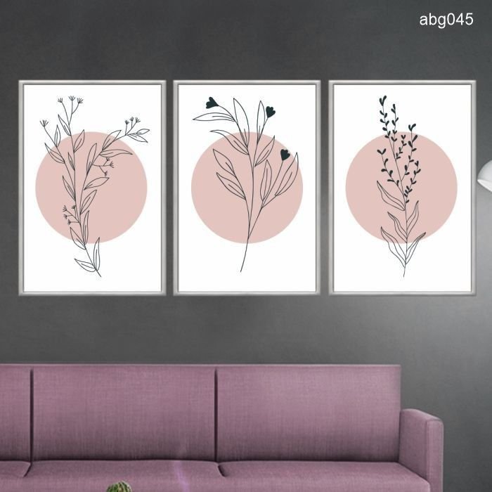 Kit 03 Quadros Decorativos - Arte Moderna Minimalista Galhos Abg045 - Vidro 40x60cm colorido