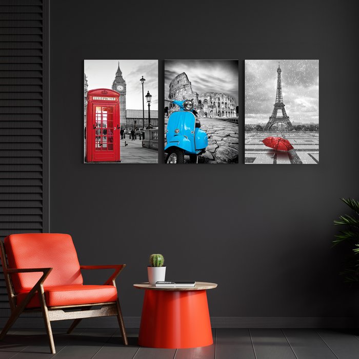 Kit 03 Quadros Londres, Paris e Roma-1,20x0,60 - Quarto- Sala
