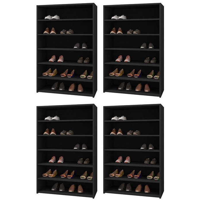 Kit 04 Armários Multiuso Sapateira Laís 5 Prateleiras Preto - Desk Design
