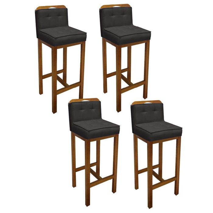 Kit 04 Banqueta Alta Com Encosto Agnes Base Madeira