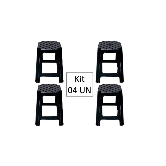 Kit 04 banquetas banquinhos de plástico resistente preto Inoplast