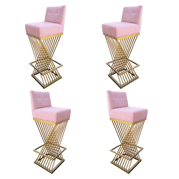 Kit 04 Banquetas Luma Base de Ferro Sued Rosa Bebê - D'classe Decor