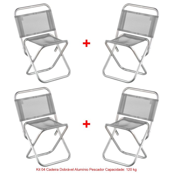 Kit 04 Cadeira Pescador Dobrável de Alumínio