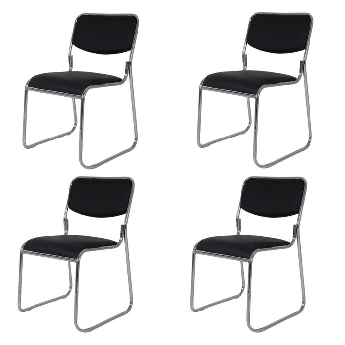 Kit 04 Cadeiras De Escritório Recepção Auditório Interlocutor Base Fixa Dakkar Dubai Preto