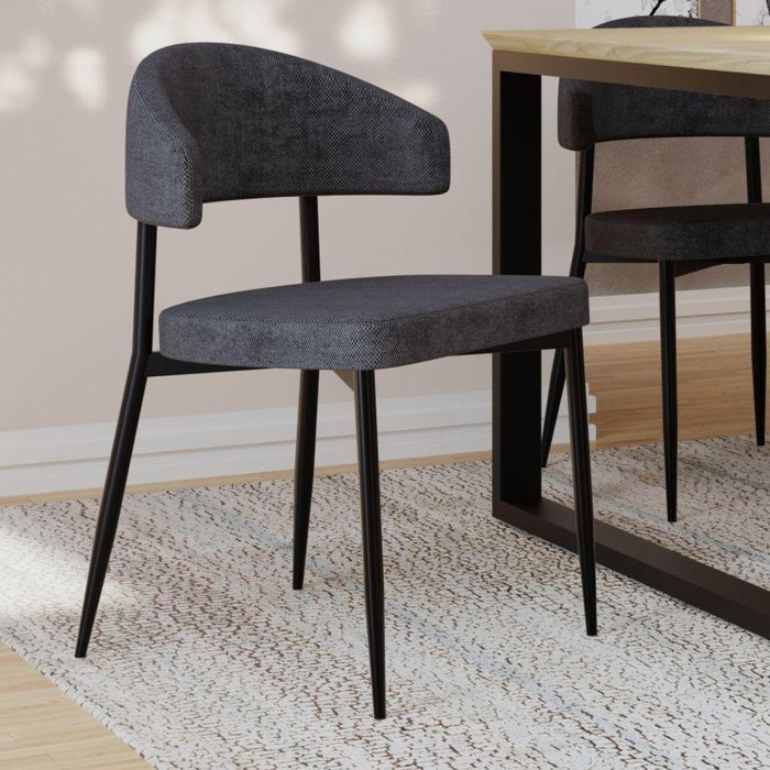Kit 04 Cadeiras Estofada Para Sala De Jantar Serena Preto C01 Linho Lautrec Grafite - Lyam Decor