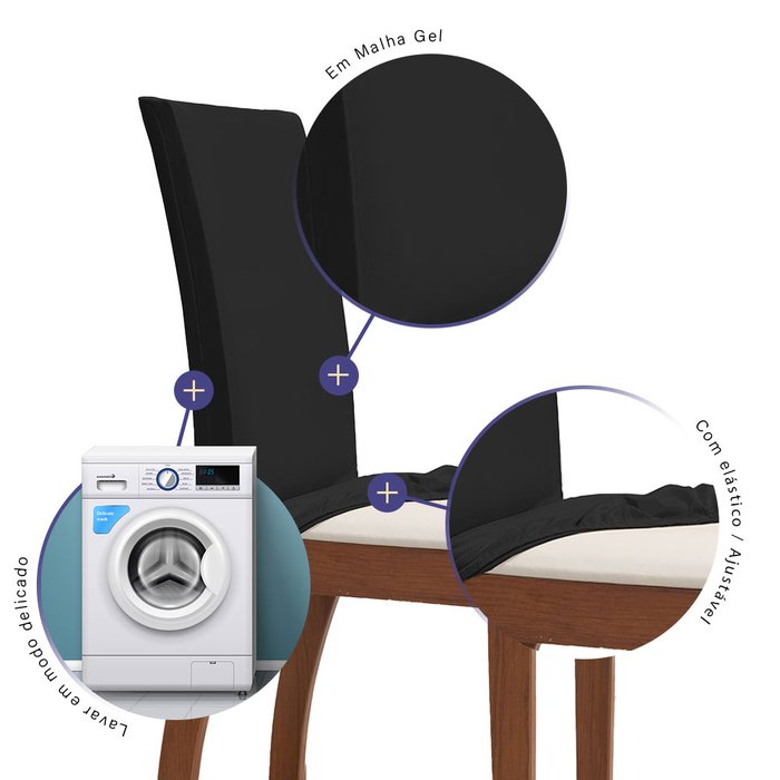 Kit 04 Capas para Cadeiras 4 Lugares Malha Gel 100% Poliéster:preto Preto