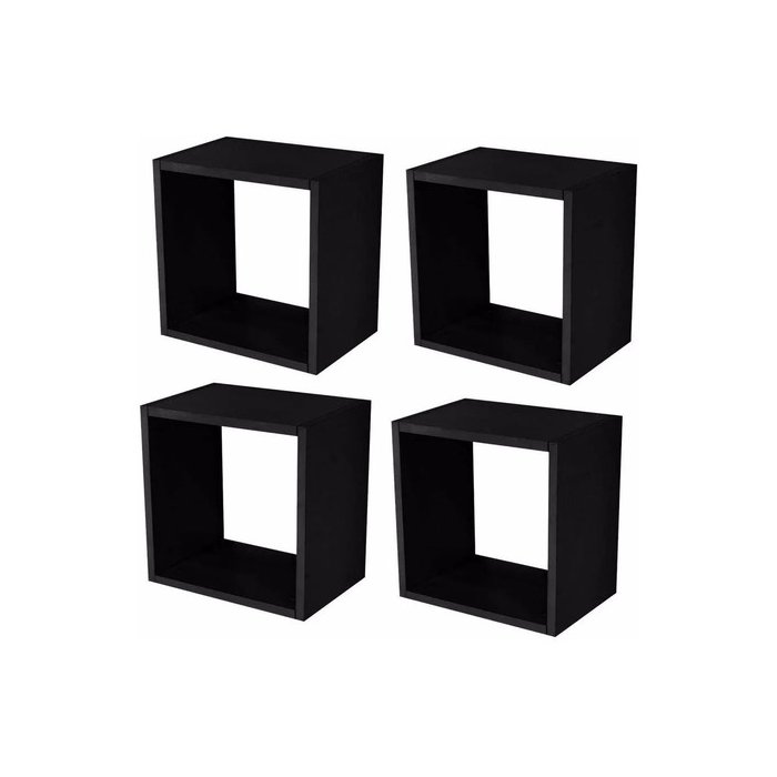 Kit 04 Nichos Quadrado Decorativo 31x31x15cm Preto Fosco