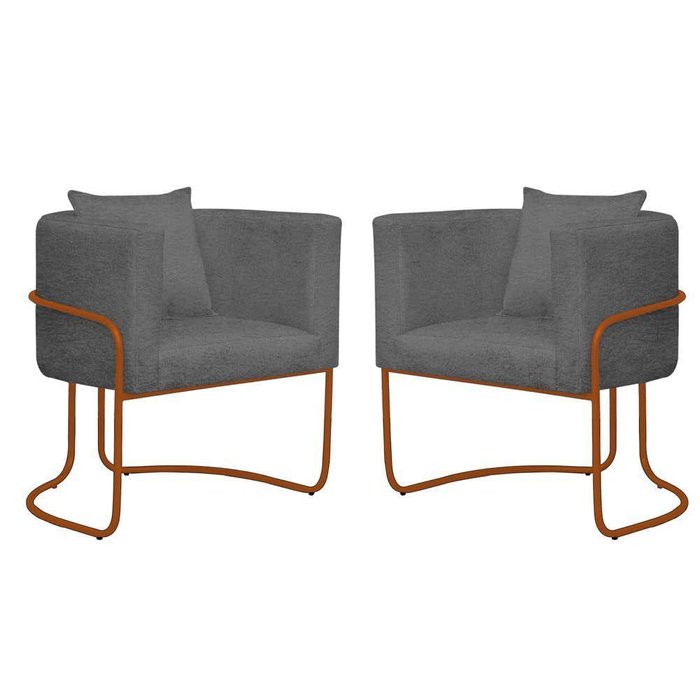 Kit 04 Poltrona Cadeira Industrial Ferro Bronze Suede Cinza