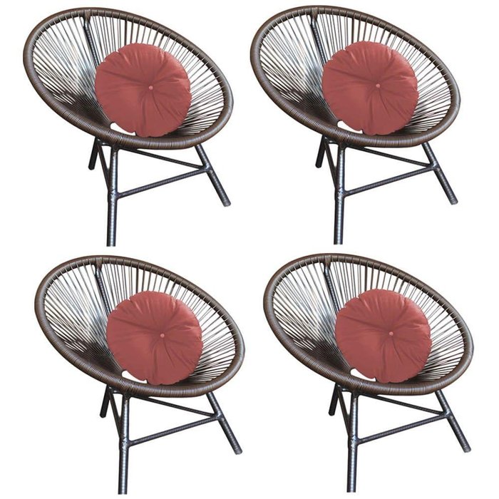 Kit 04 Poltrona Cadeira Acapulco Sala Jardim Varanda Marrom Com Almofada Redonda Suede Rose Gold - Ahazzo Móveis
