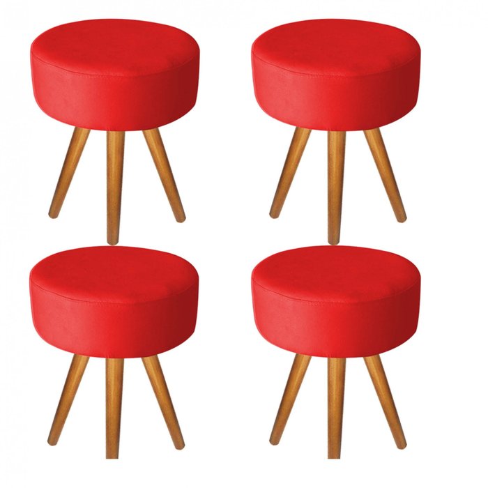 Kit 04 Puff Puf Banqueta Redondo Decorativo Para Sala de Estar Recepção Corino Vermelho -