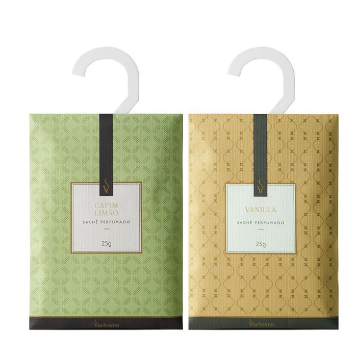 Kit 04 Sachê Via Aroma 25g Vanilla E Capim E Limão