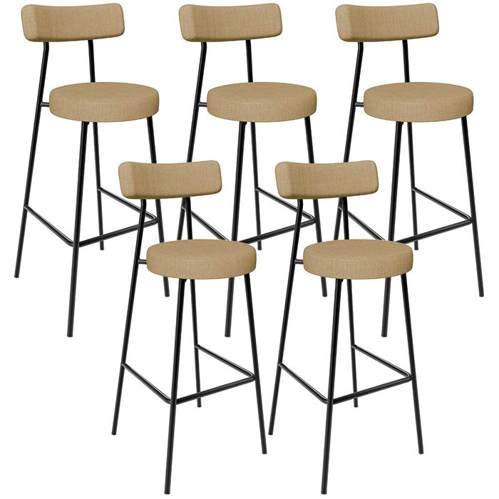 Kit 05 Banquetas Alta Bar Cozinha Sala De Jantar Em Aço Milão L02 Linho Bege Escuro - Lyam Decor