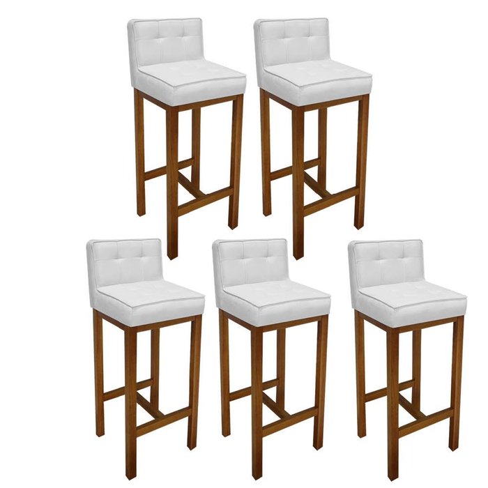 Kit 05 Banquetas Alta Íris Corano Branco Com Encosto Para Balcão Bistrô e Base Castanho -Bebê