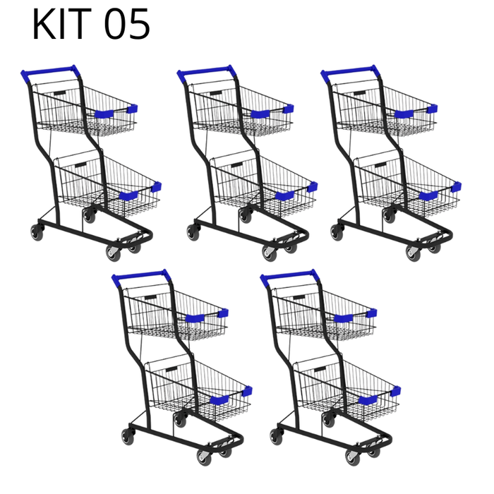 Kit 05 Carrinhos de Compras Supermercado Lojas Reforçado 90l
