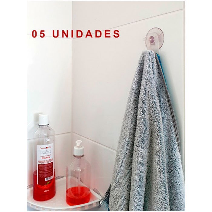 Kit 05 Gancho Cabide Com Ventosa Reforçado Pvc Resistente