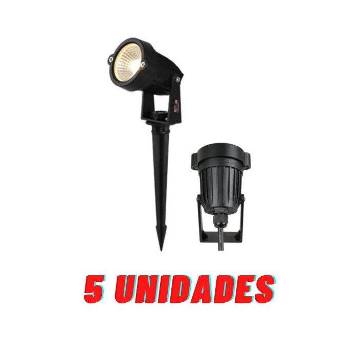 Kit 05 Luminária Espeto Jardim Led 5w Prova D'água Bivolt 3000k