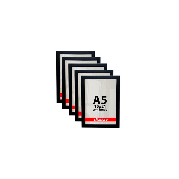 Kit 5 Molduras para Quadro A5 15x21 Com Fundo (Sem Vidro)