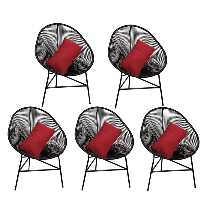 Kit 05 Poltrona Cadeira Acapulco Plus com Almofada Quadrado Preto Suede Vermelho - Ahazzo Móveis